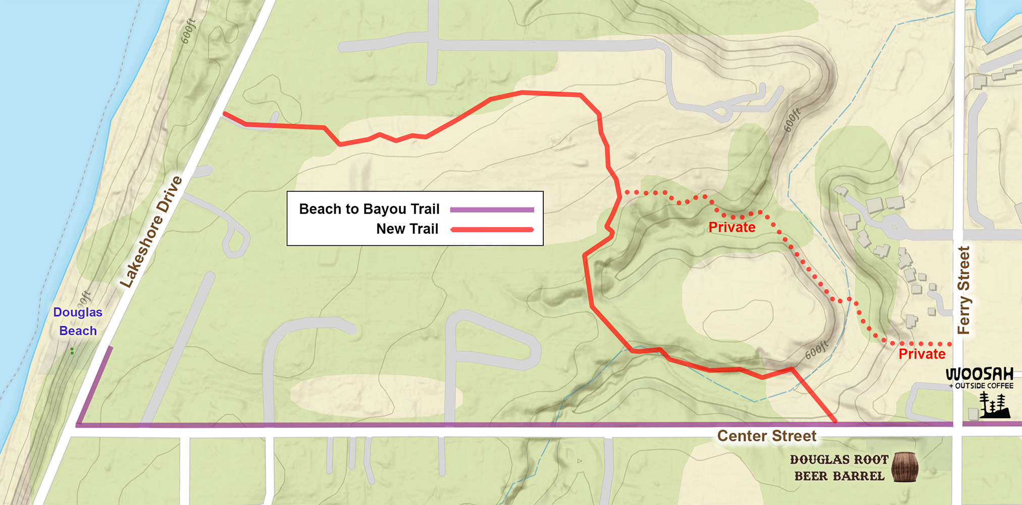 Our route will combine part of the Beach to Bayou Trail and a brand new trail through what used to be the West Shore Golf Club (see the map below)!