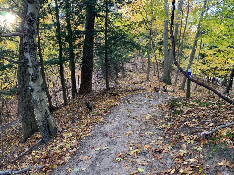 Description: The trail winds through wooded areas on either side of Perryman Street, allowing bathers to hike from the Chain Ferry to Oval Beach without worrying about cars. There are a few very short steep sections and at a couple of points where you have to look carefully for the next sign. About halfway through is a deck with benches, overlooking a ravine.
